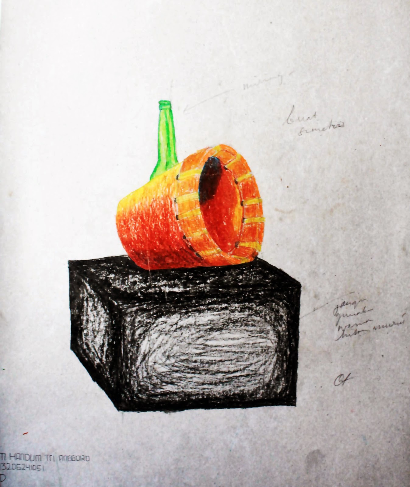 memakai crayon, dosen gambar bentuk UNY, mahasiswa seni rupa uny.