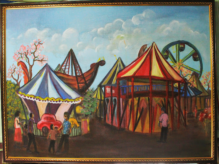 Ini tugas yang terakhir melukis suasana sekatenan. seperti biasalah gak usah saya jelaskan lagi DSFP. Ukuran lukisan ini lumayan besar sekitar 1 meteran. karena waktu yang mepet saya minta bantuan teman untuk ikut mengeksekusi lukisan ini diantaranya ditya, Kholif Luqman Maulana dari Blora, dan Riyan Rojiyanto dari gua hantu, maksudnya pacitan.